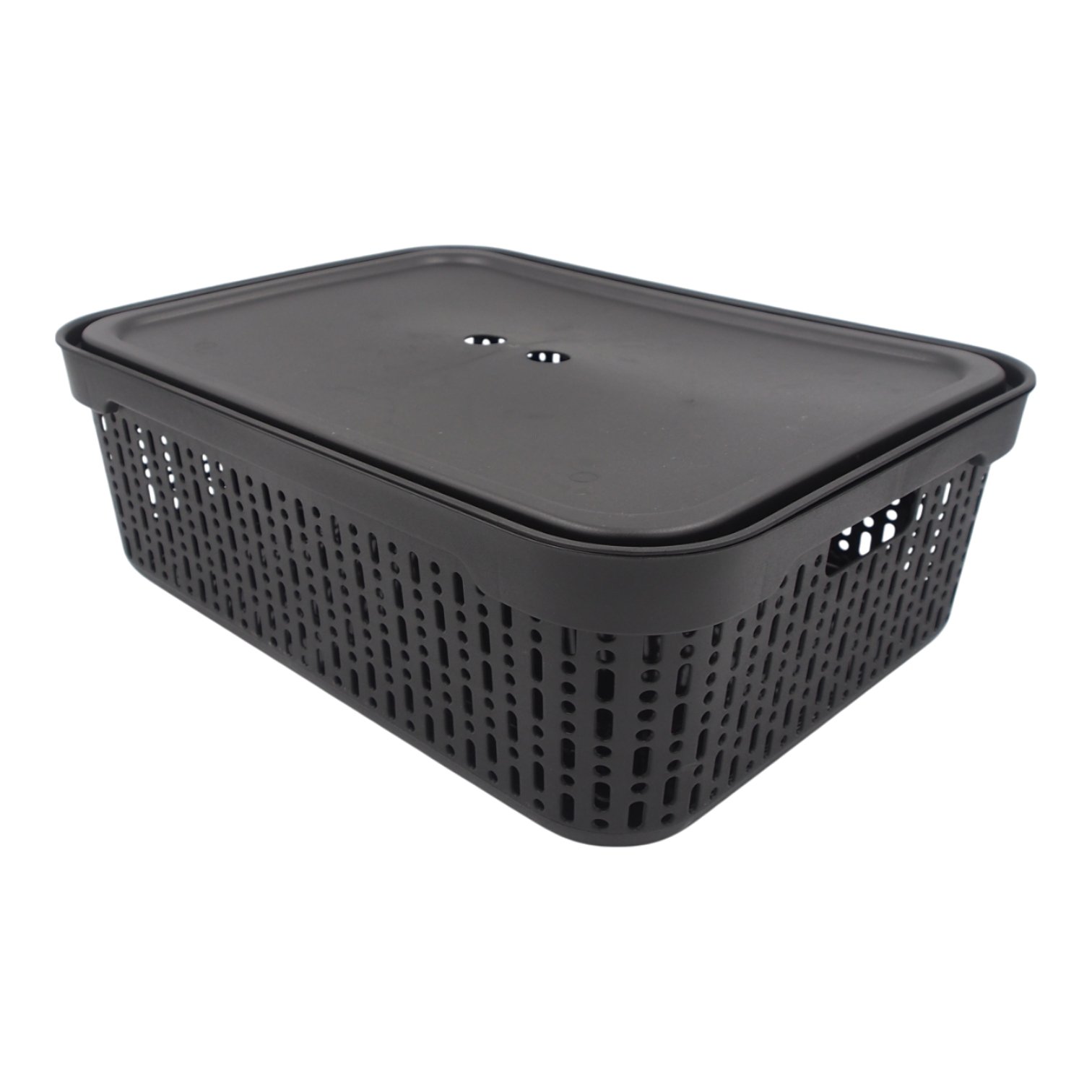 Plastikinė dėžutė su dangčiu, 30×20×9 cm JUODA