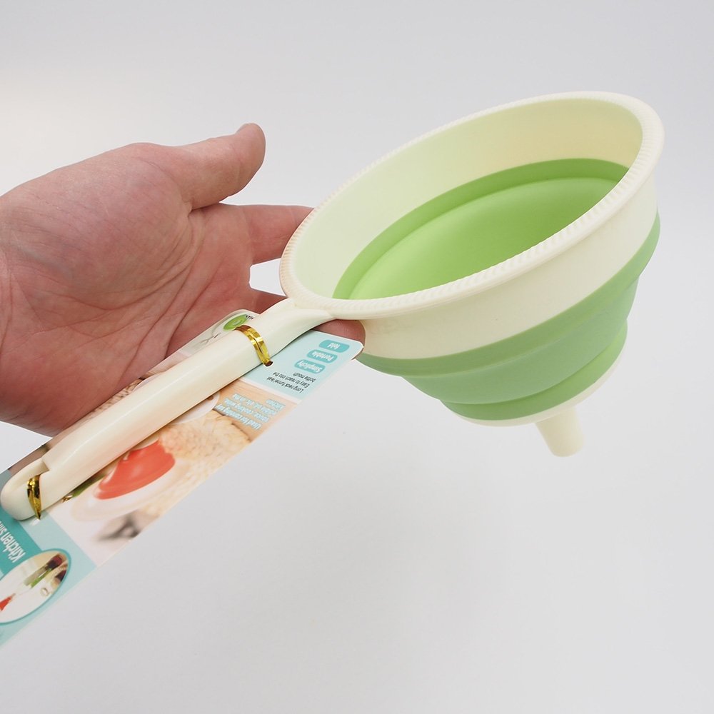 Šis praktiškas silikoninis piltuvėlis yra puikus pagalbininkas virtuvėje, padedantis greitai ir efektyviai perpilti skysčius ar birius produktus.