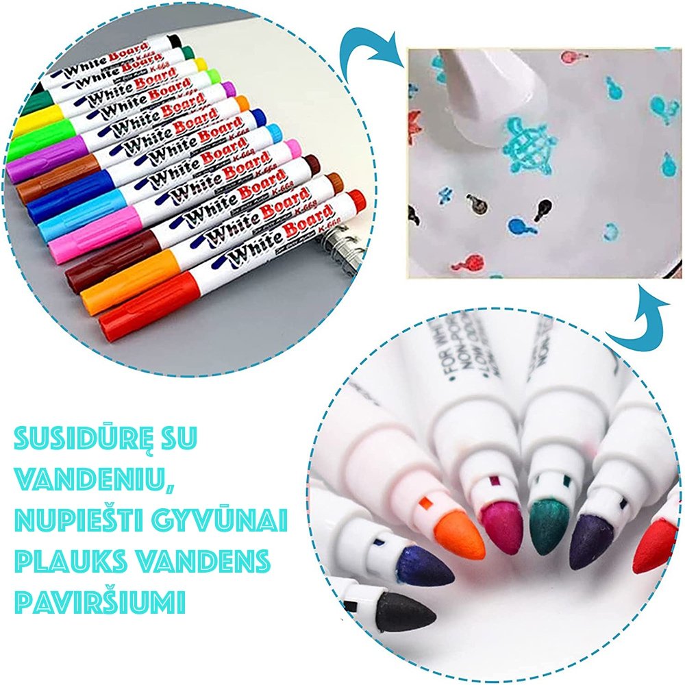 - Naudokite šį stebuklingą rašiklį, kad tapytumėte ant šaukšto. Susidūrę su vandeniu, nupiešti paveikslėliai lengvai plauks patys, o tai labai smagus užsiėmimas vaikams! Pakuotėje kartu su porcelianiniu šaukšteliu.