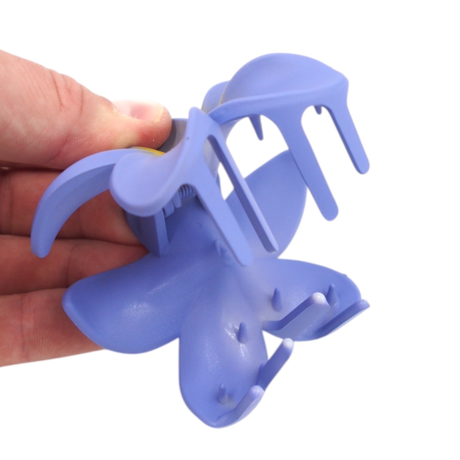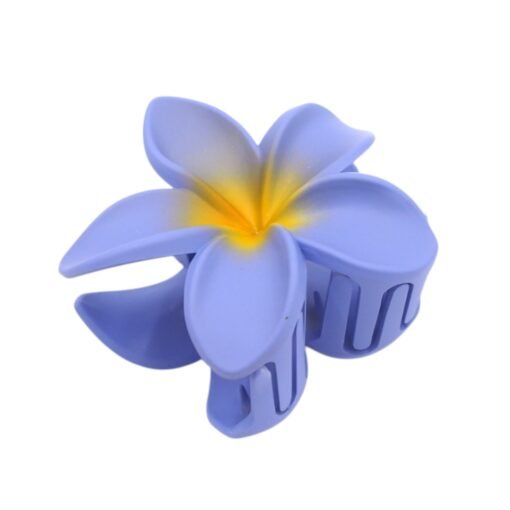 Įneškite į savo įvaizdį elegancijos ir gaivumo su šiuo subtiliu, mėlynos spalvos plaukų segtuku, primenančiu plumerijos žiedą. Švelniai violetinė–mėlyna spalva su geltonu žiedo centru sukuria žaismingą ir išskirtinį akcentą, kuris puikiai dera tiek prie kasdienio, tiek prie šventinio stiliaus.