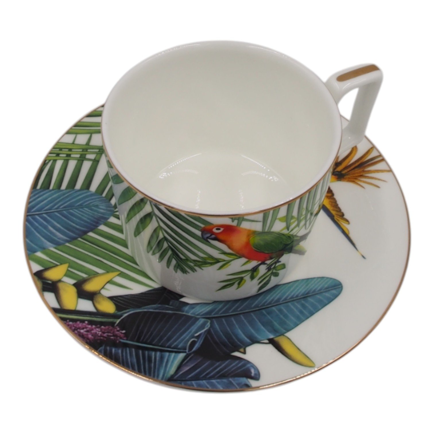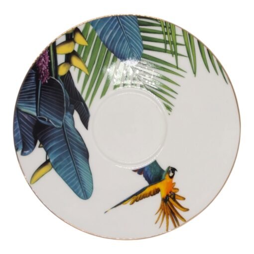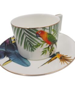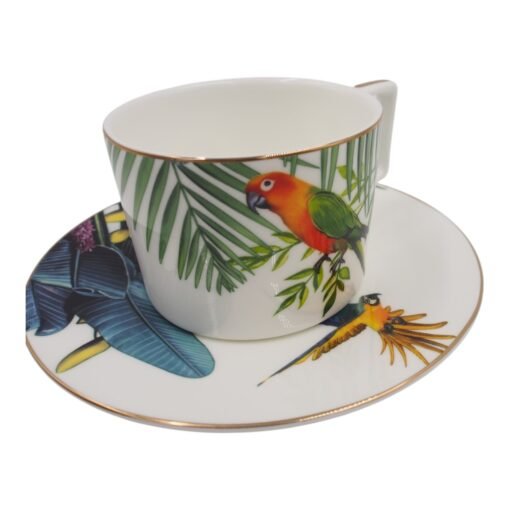 Porcelianinis puodelis su lėkštute, 275 ml, papūgos motyvas