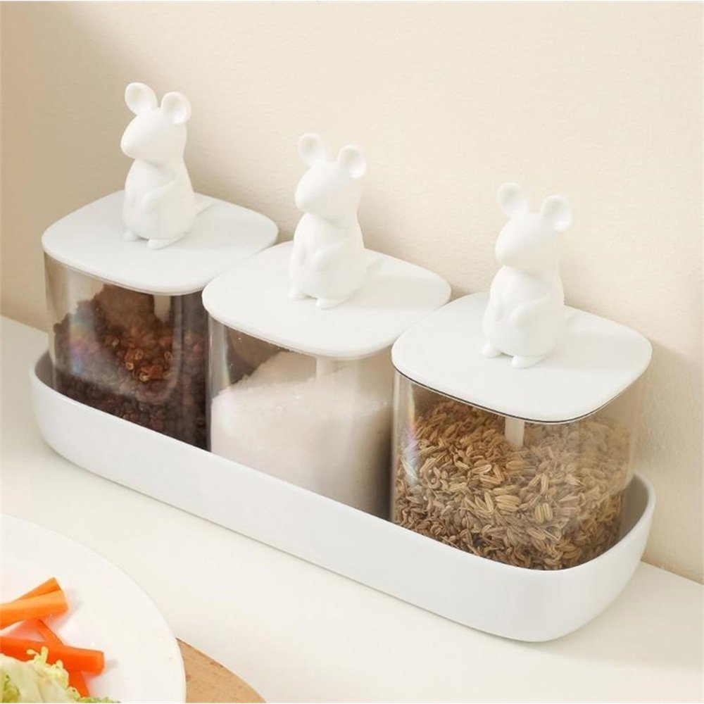 Skaidrus prieskonių indeliai su animacine rankena ir dangteliu, vandeniui atsparus prieskonių laikymo indelis, skirtas namų virtuvei.