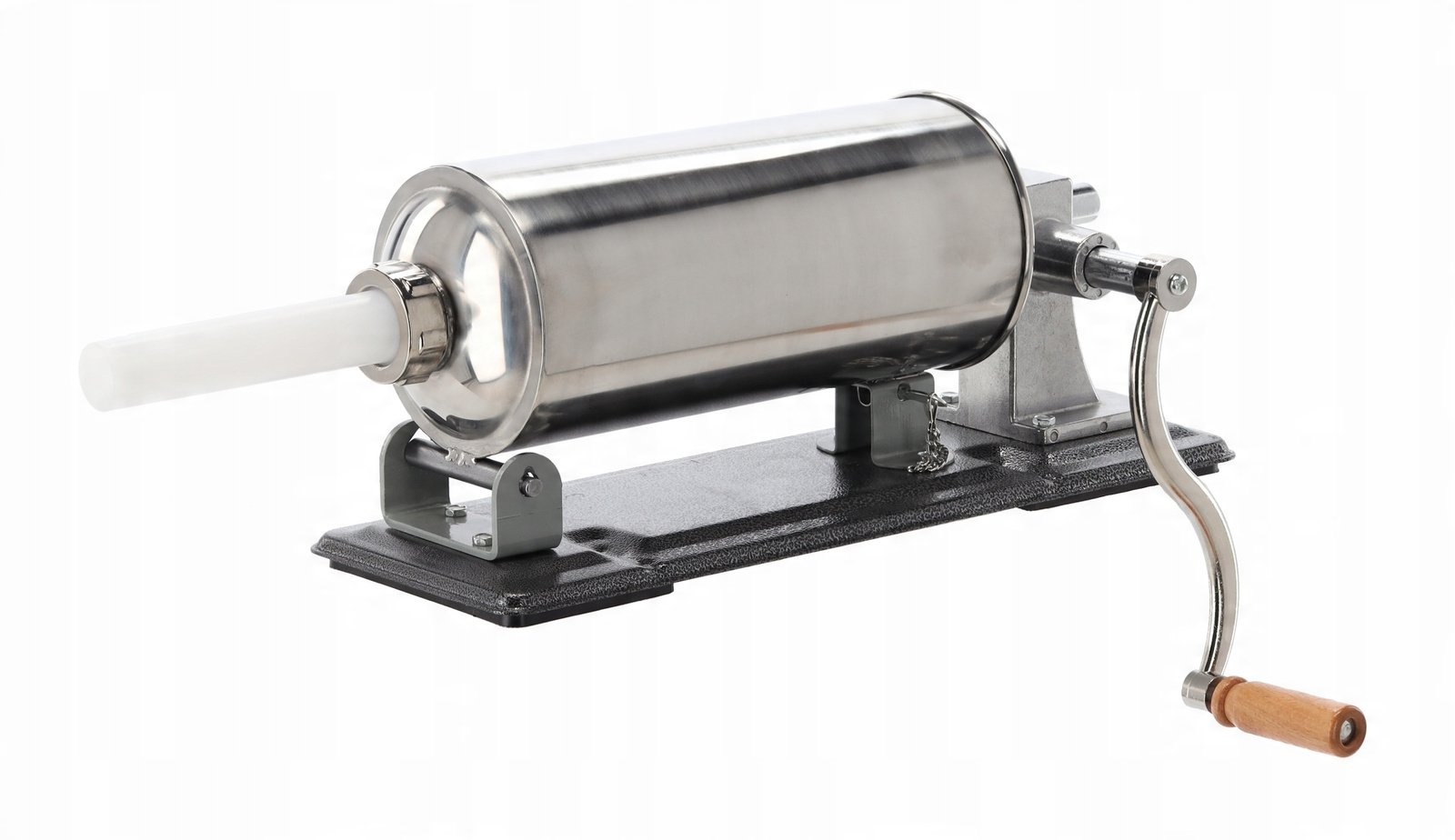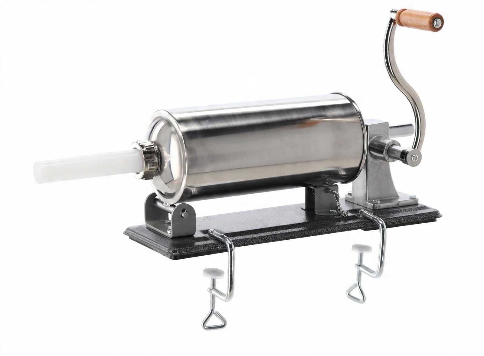 Rankinė nerūdijančio plieno dešrų kimšimo mašina skirta naminių dešrų, vyniotinių ir kitų mėsos gaminių gamybai. Tvirta konstrukcija, didelė talpa ir stabilus tvirtinimas prie stalo leidžia patogiai ir tiksliai kimšti dešras namų sąlygomis.