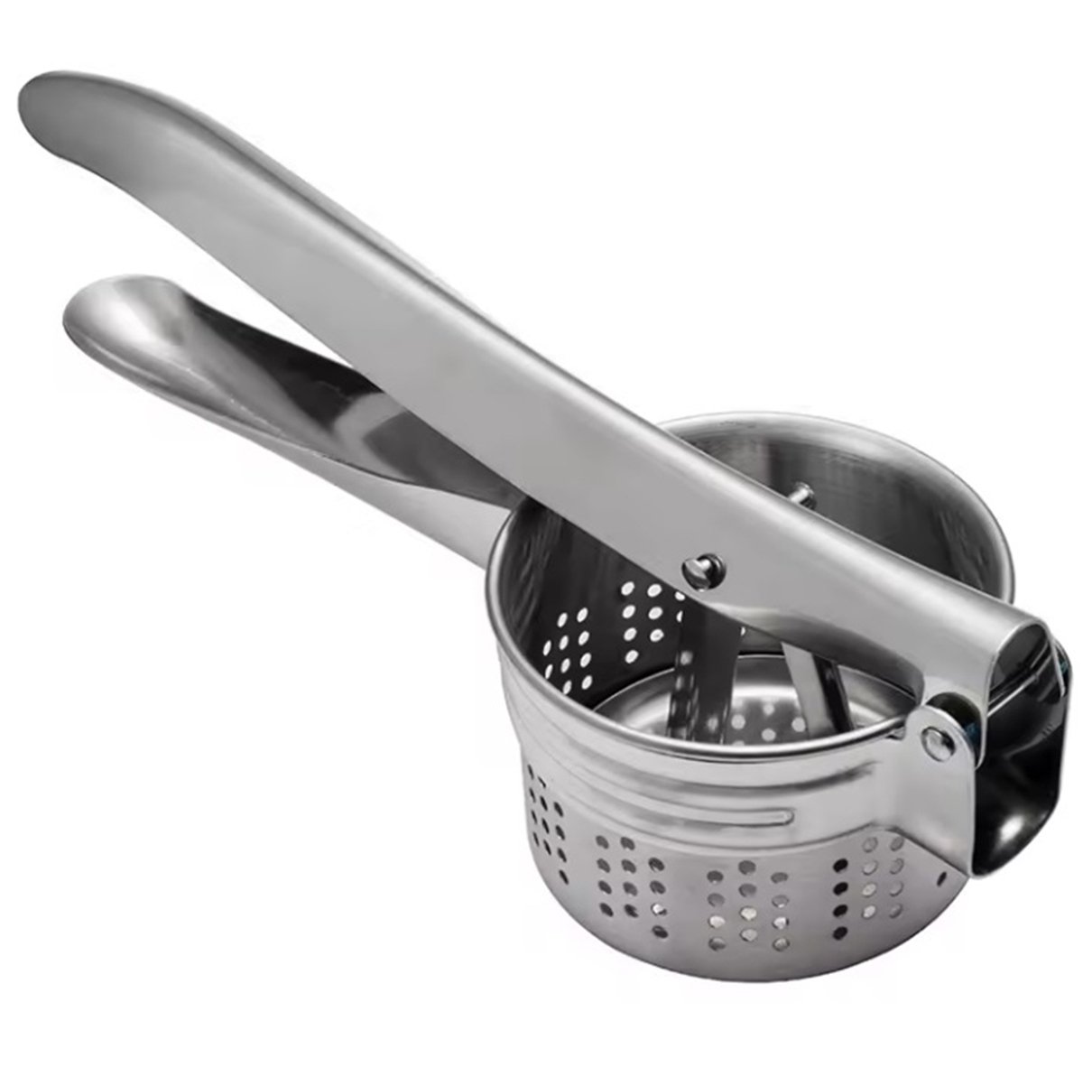 - Rankinis, plieninis presas bulvėms ir kitiems minkštiems vaisiams bei daržovėms spausti.