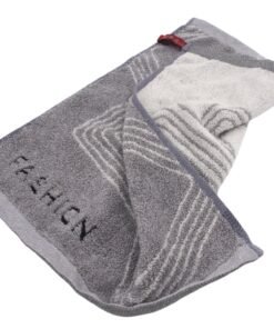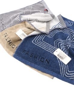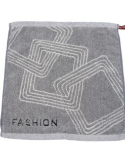Modernus geometrinis raštas ir užrašas „FASHION“ suteikia jam išskirtinumo bei stiliaus. Praktiška kilpelė leidžia lengvai pakabinti rankšluostį vonioje ar virtuvėje. Galima rinktis iš kelių spalvų (pilka, smėlinė, mėlyna), todėl jis lengvai priderinamas prie bet kokio interjero.