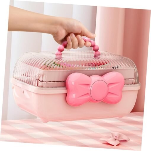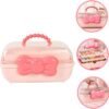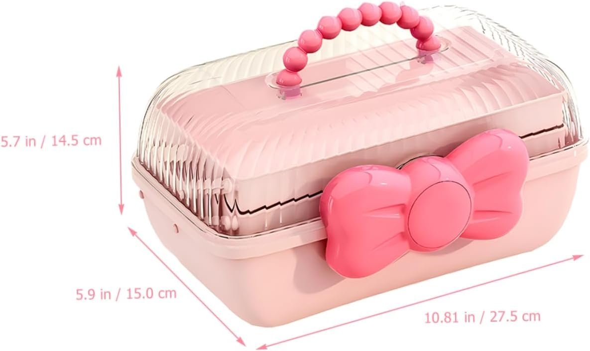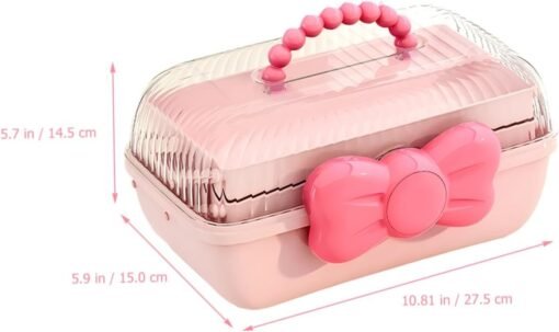 Rožinė papuošalų dėžutė su kaspinu ir rankena, 27,5 x 15 x 14,5 cm