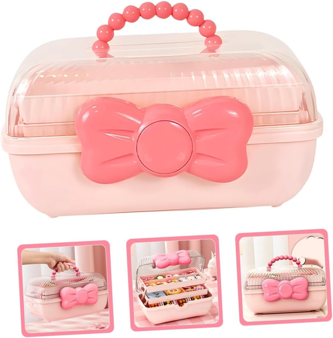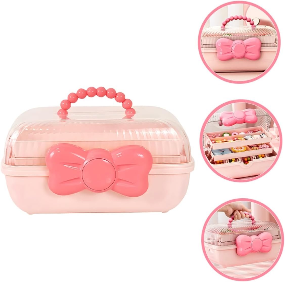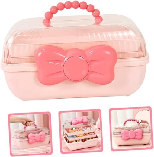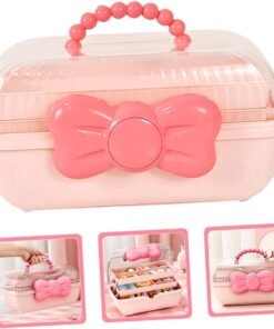 Stilinga ir funkcionali vaikiška papuošalų dėžutė – tai puikus pasirinkimas mažosioms mados mylėtojoms. Ši elegantiška dėžutė pasižymi ryškia rožine spalva, dekoruota mielu kaspinu ir patogia karoliukų rankenėle. Skaidrus dangtelis leidžia matyti vidų, o trijų lygių lentynėlės užtikrina patogų ir tvarkingą aksesuarų laikymą.