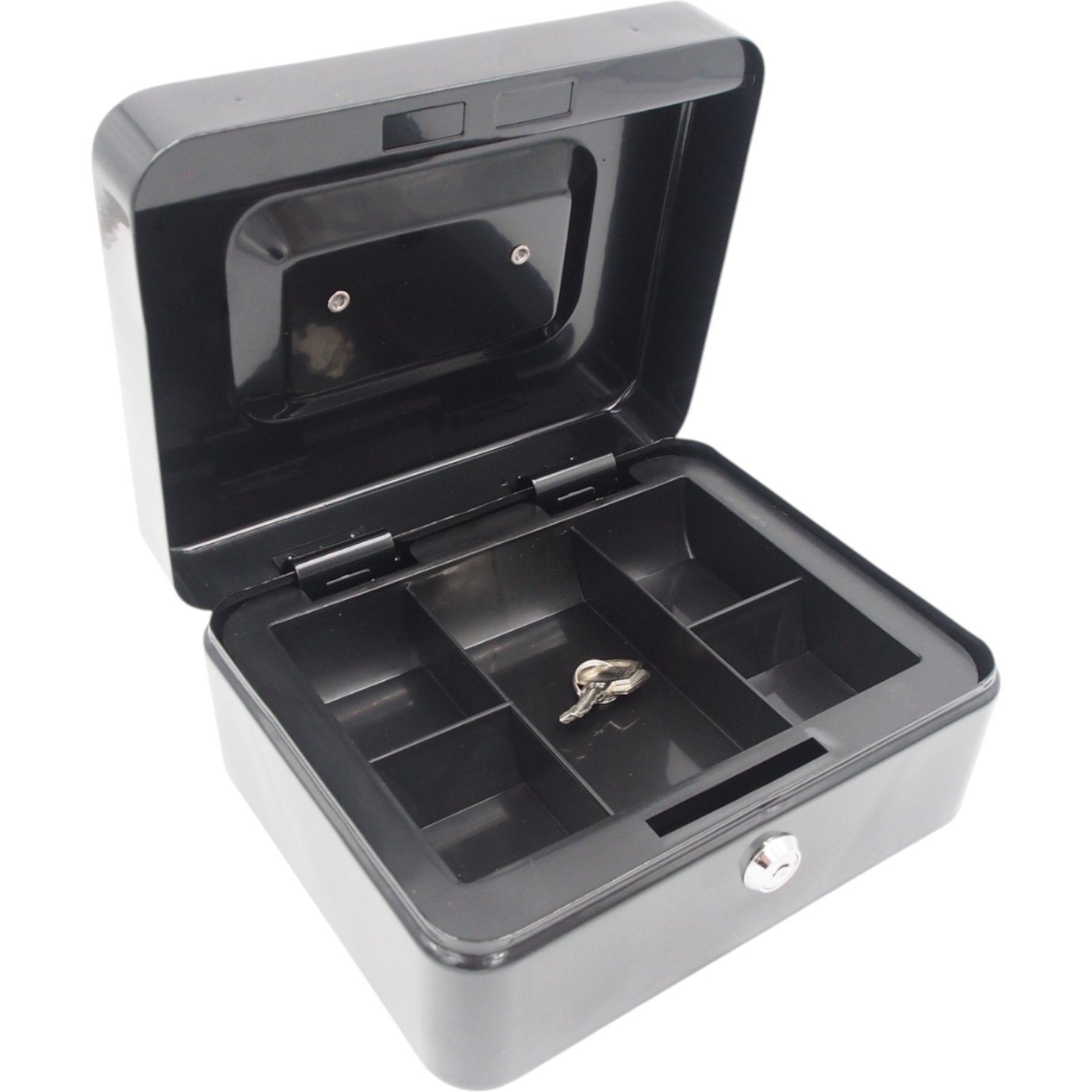 Tvirta ir patogi metalinė dėžutė gryniesiems pinigams bei monetoms laikyti. Puikiai tinka naudoti namuose, biure ar smulkioje prekyboje. Dėžutė turi užraktą su dviem raktais ir išimamą skyrių monetoms, todėl pinigus laikyti bus tvarkinga ir saugu.