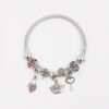 Ši subtili apyrankė spinduliuoja gaivumu ir rafinuotumu. Sidabrinės spalvos pagrindas puikiai dera su šviesiai žaliais akcentais, kurie simbolizuoja atsinaujinimą, ramybę ir pusiausvyrą. Blizgantys dekoratyviniai karoliukai suteikia aksesuarui lengvumo ir elegancijos, o išskirtiniai pakabukai prideda individualumo.