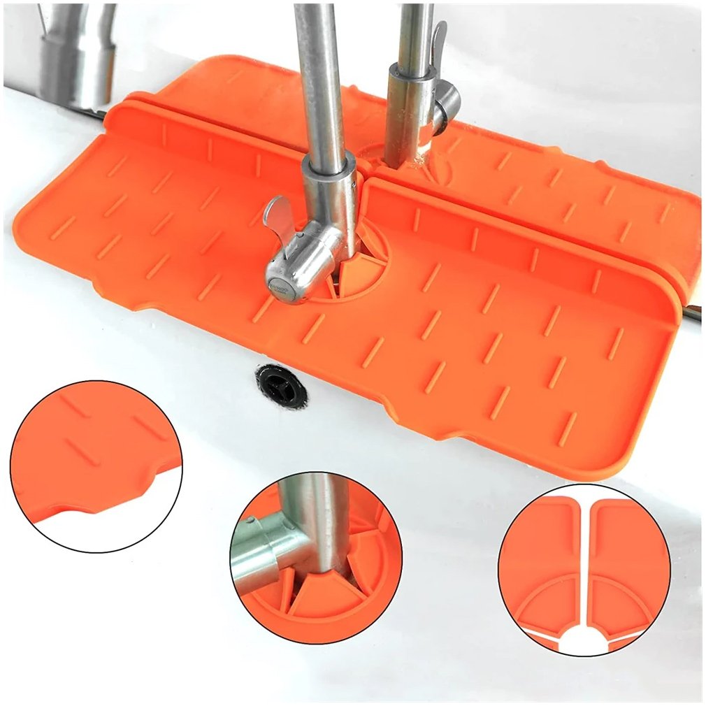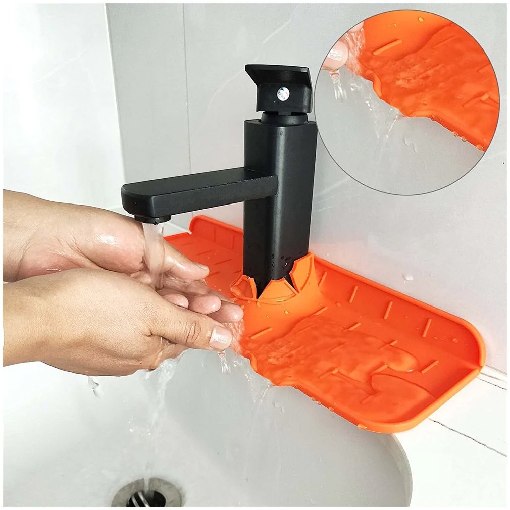 Šis silikoninis kriauklės kilimėlis skirtas apsaugoti stalviršį ir kriauklės zoną nuo vandens taškymosi, lašėjimo ir drėgmės kaupimosi aplink maišytuvą. Speciali forma leidžia tiksliai apgaubti čiaupo pagrindą, o paviršius nukreipia vandenį atgal į kriauklę, taip palaikant švarą ir sausumą.