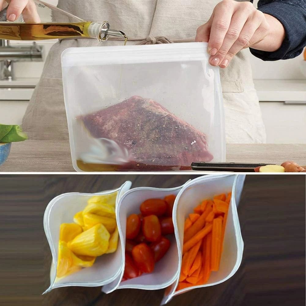 - Šie silikoniniai daugkartiniai maišeliai maistui ne tik išlaikys jūsų maistą šviežią bet ir tausos gamtą, kadangi jums nebereikės pirkti plastikinių maišelių.