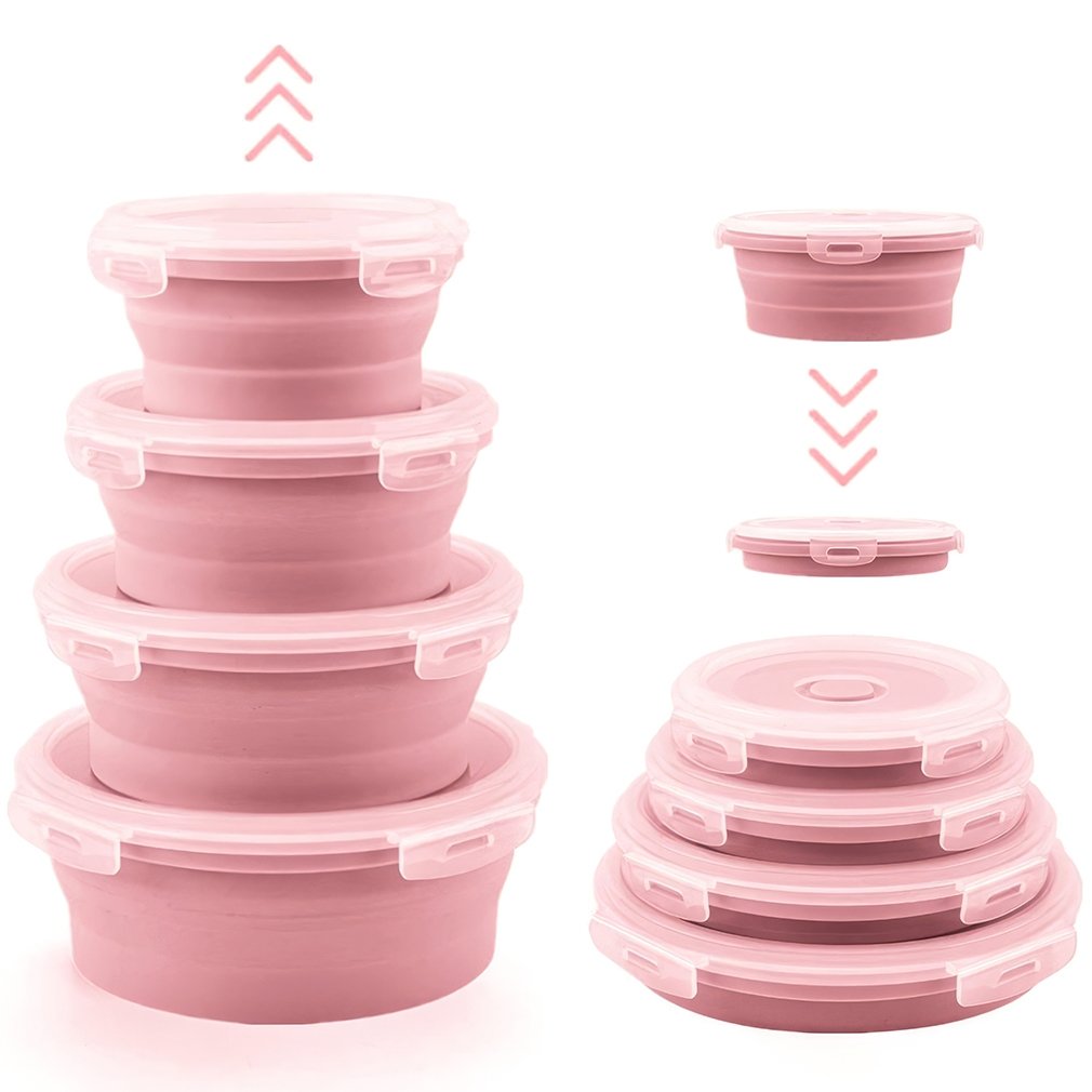 Silikoninių sulankstomų maisto indelių rinkinys (4 vnt.) rožinė