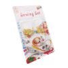 Pilnas siuvimo rinkinys, kuriame yra net 30 elementų. Puiki dovana siuvimo entuziastams. Praktiškoje plastikinėje dėžutėje, telpa daugybė priedų (adatos, siūlai, segtukai, sagos, žirklės, matavimo juosta ir kt.).