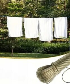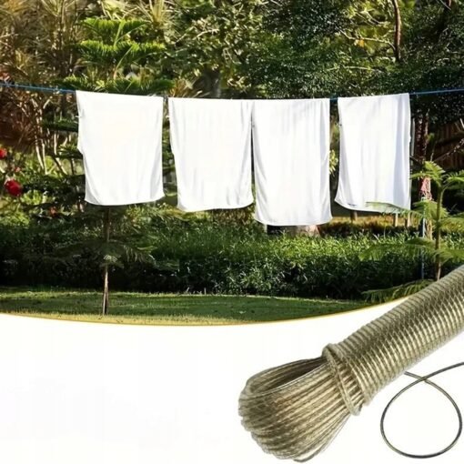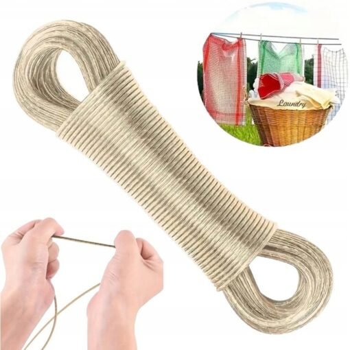 Praktiška ir patvari skalbinių virvė – puikus pasirinkimas tiek namams, tiek sodui ar kelionėms. Virvė pagaminta iš tvirto sintetinio pluošto, todėl atspari drėgmei, saulės spinduliams ir kasdieniam naudojimui. Komplekte yra plastikiniai kabliukai, kurie leidžia lengvai ir greitai pritvirtinti virvę norimoje vietoje.