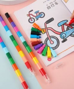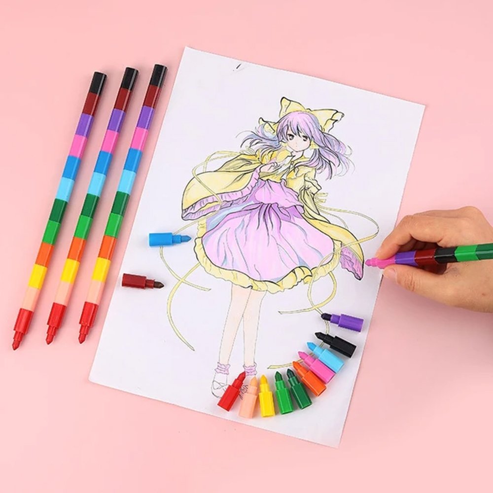 - Sumaunamas dizainas dvylika skirtingų spalvų viename rašiklyje. Rinkinį sudaro 6 rašikliai. Viso 72 vnt. skirtingų kreidelių.