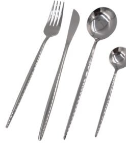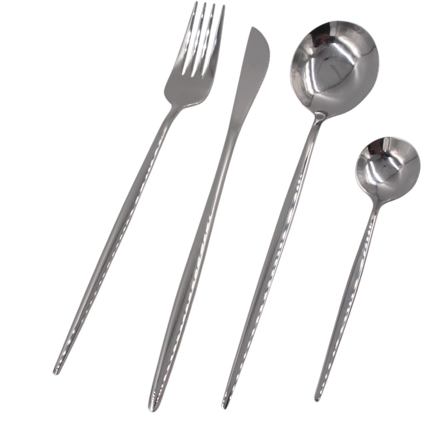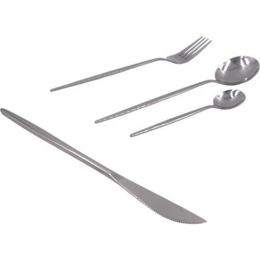Elegantiškas ir praktiškas stalo įrankių rinkinys, pagamintas iš aukštos kokybės nerūdijančio plieno. Minimalistinio dizaino įrankiai tinka tiek kasdieniam naudojimui, tiek šventiniam stalui. Ergonomiškos formos rankenėlės patogiai guli rankoje, o blizgus paviršius suteikia prabangos įspūdį.