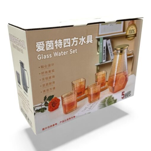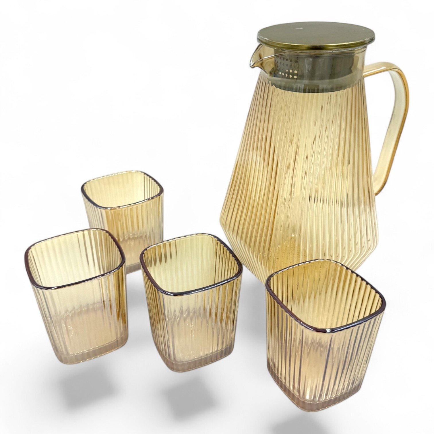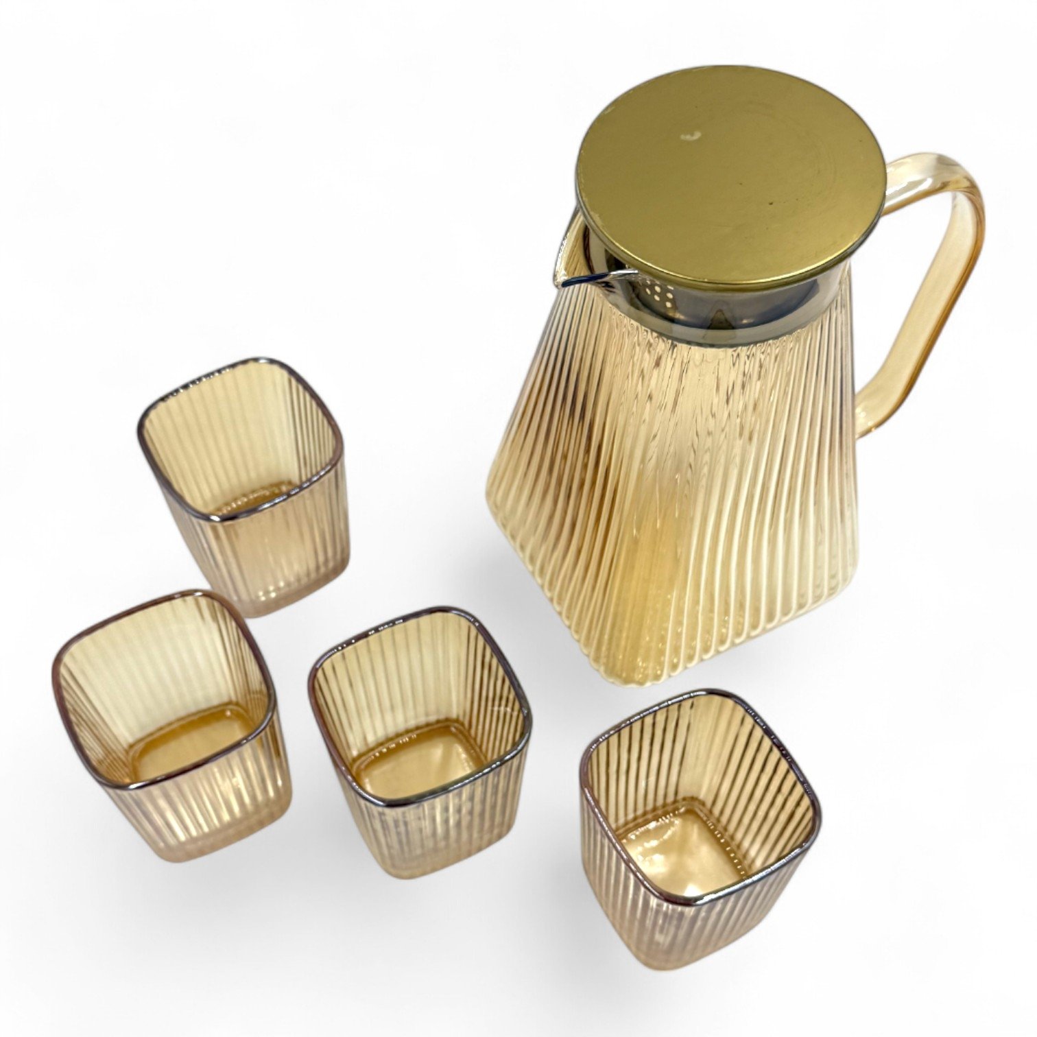 Stiklinis ąsotis su dangteliu ir stiklinėmis