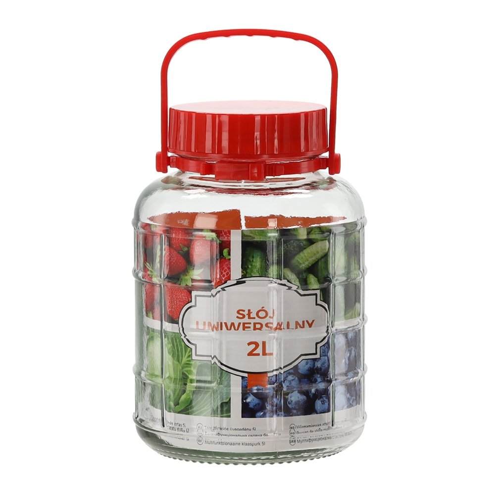 Universalus 2 litrų talpos stiklainis – praktiškas sprendimas įvairių maisto produktų laikymui namuose. Puikiai tinka konservams, uogienėms, marinuotoms daržovėms, džiovintiems vaisiams, kruopoms, riešutams ar kitiems biriems produktams.