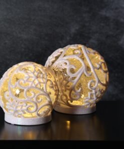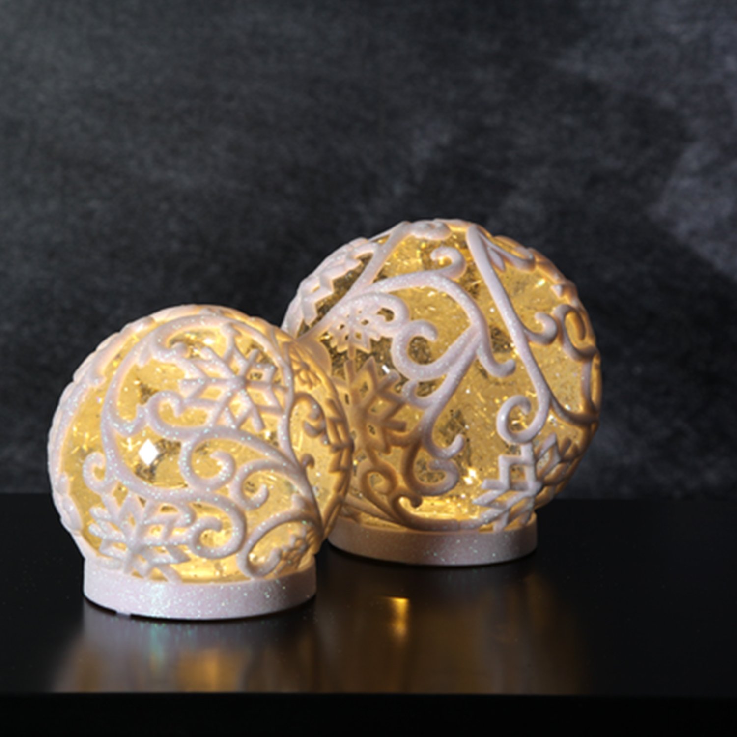 Sukurkite jaukią ir šventišką atmosferą savo namuose su elegantišku, šviečiančiu kalėdiniu burbulu. Ši dekoracija pasižymi subtiliu snaigių raštu, kuris, apšviestas integruota LED lempute, atspindi šviesą ir kuria magišką efektą. Burbulas spinduliuoja šilta balta šviesa, kuri idealiai tinka tiek dienos metu kaip puošmena, tiek vakare – jaukiam apšvietimui.