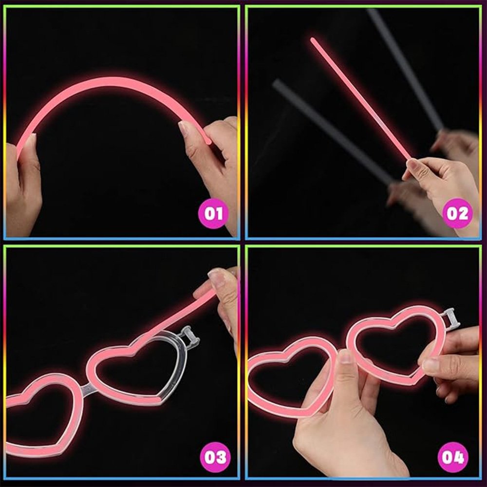- Lengva surinkimo sistema: akinių forma ir rėmas sukuriami jungiant šviečiančias lazdeles. Tai paprastas ir smagus procesas, kuris leis jums sukurti unikalius, asmeniškus akinius per kelias minutes.