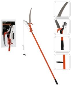 Teleskopinis šakų genėtuvas su pjūklu skirtas patogiam ir saugiam aukštai esančių medžių bei krūmų šakų genėjimui. Įrankis leidžia pasiekti didelį aukštį be kopėčių, todėl darbas tampa saugesnis ir greitesnis. Dėl svirtinio mechanizmo sumažinamos reikalingos pastangos, o papildomas pjūklas leidžia lengvai nupjauti storesnes šakas.