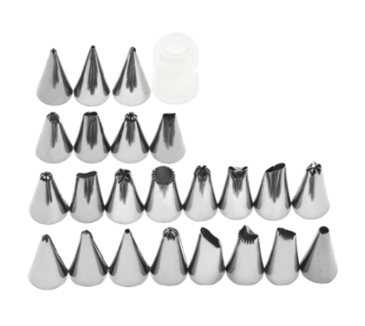 Puikus tortų ir pyragų dekoravimo rinkinys, kurį sudaro net 23 įvairūs plieniniai antgaliai. Juos galima saugiai plauti indaplovėje ir naudoti su maistu!