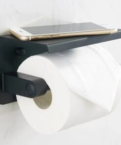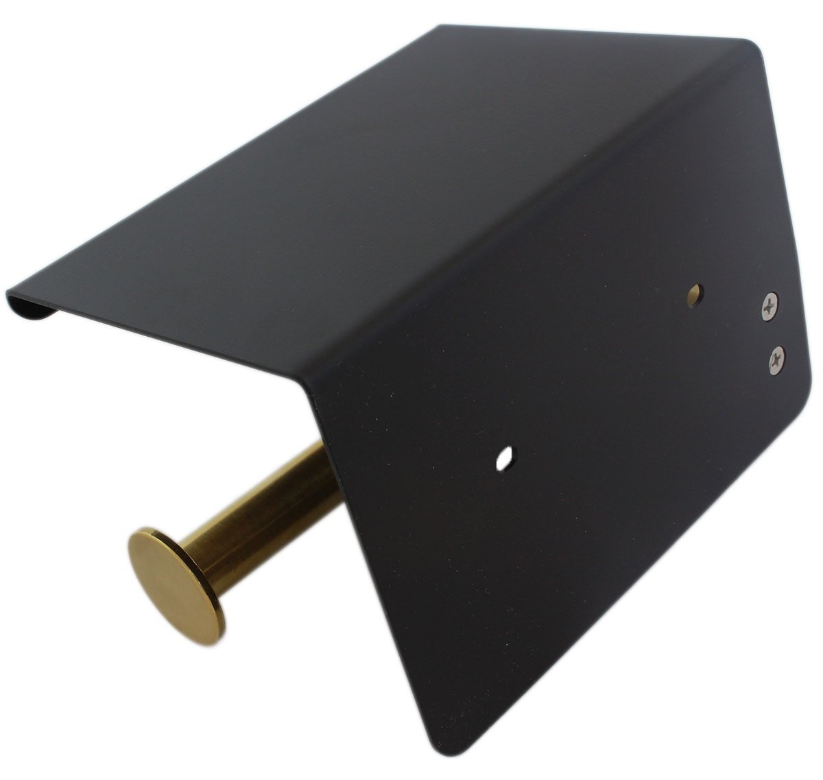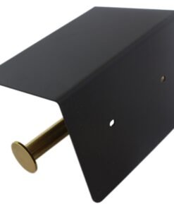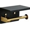 Juodos ir auksinės spalvos, plieno tualetinio popieriaus laikiklis. Yra papildoma lentyna telefonui ar kitiems smulkiems daiktams pasidėti. Pagaminta iš tvirto, milteliniu būdu dengto nerūdijančio plieno. Patogus montavimas naudojant komplekte esančius tvirtinimo elementus (varžtus ir poveržles).