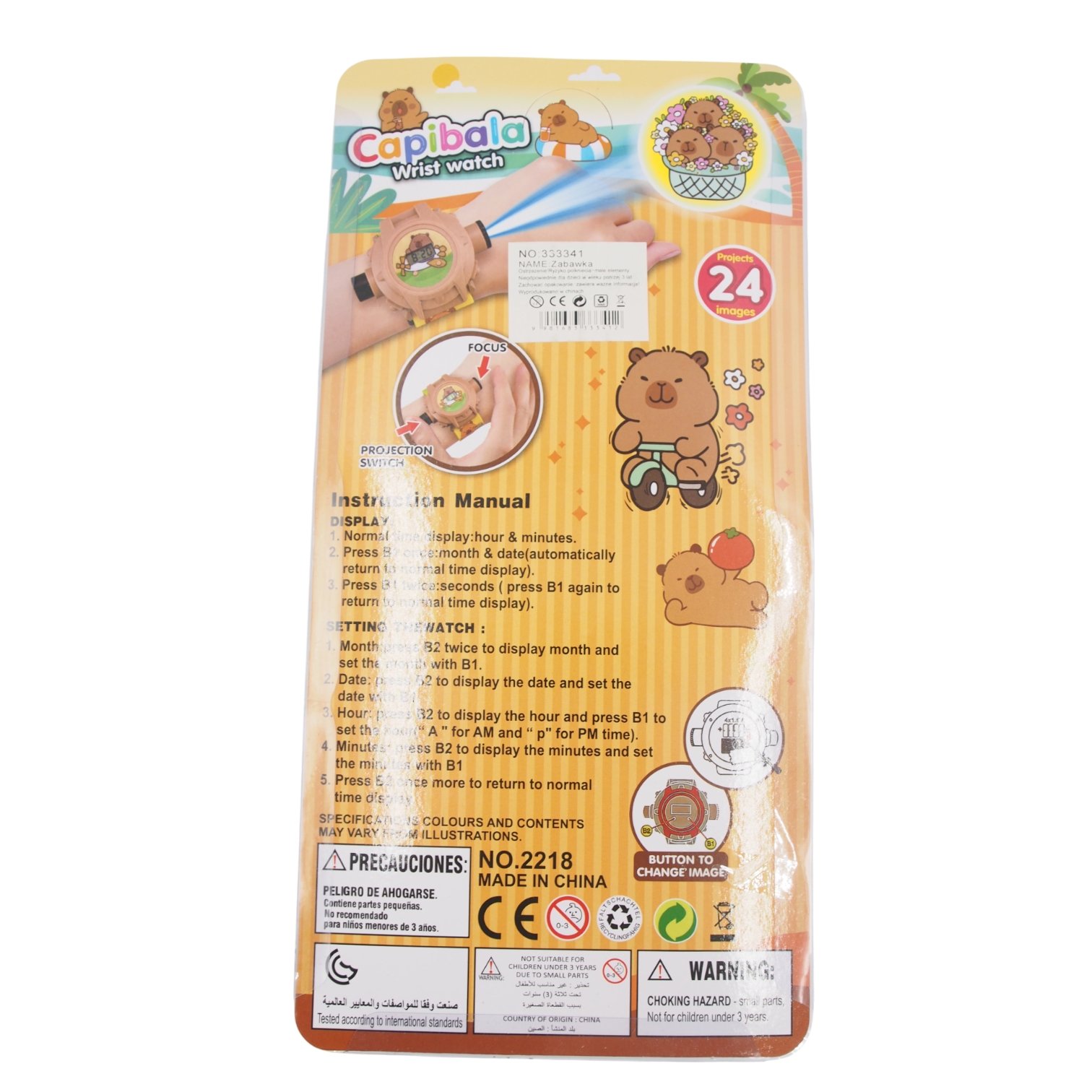 Vaikiškas laikrodis su projekcija „Capibala“ + pakabukai