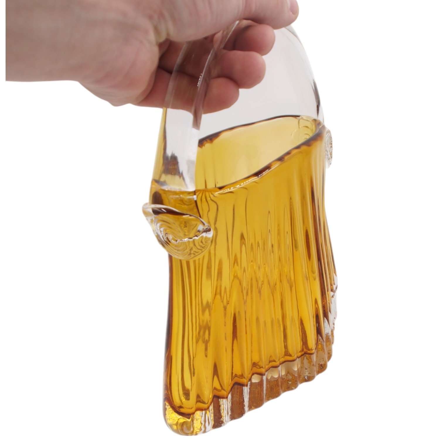Stiklinė dekoratyvinė vaza su rankenėle – 24×14×28.5 cm | Forma Lumo kolekcija