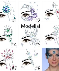 Priklijuokite savo kūno papuošalus ant viso veido ir kūno, kaktos, antakių, skruostų, aplink akis, pilvą, krūtinę, nugarą, rankas ir net plaukus! Dėvėkite juos ir būsite vakarėlių ir reivo festivalio karalienė.