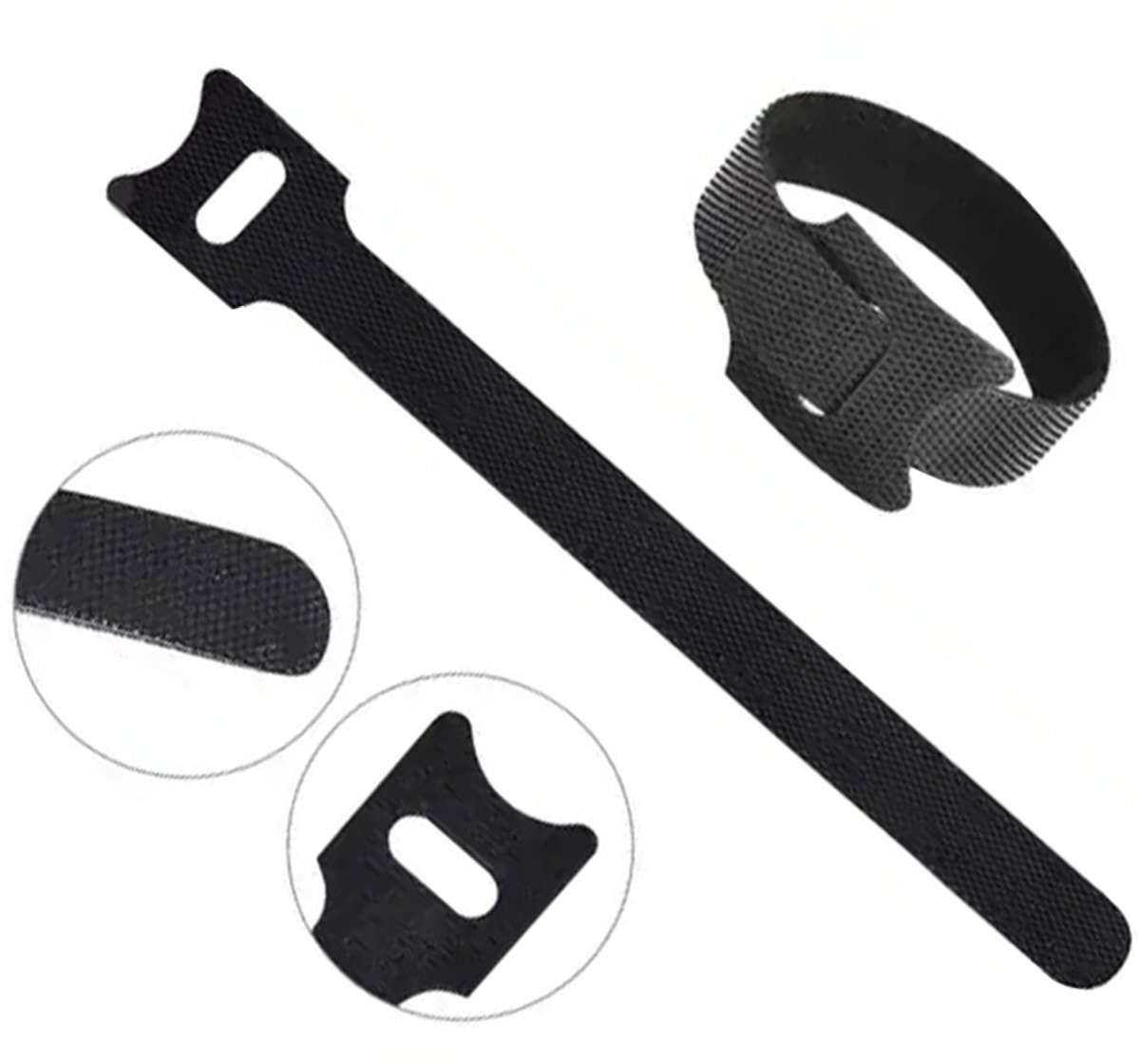 50 kabelių raištelių rinkinys su tvirtu Velcro užsegimu. Naudojami apsaugoti kabelius nuo susipainiojimo ir palengvinti jų sutvarkymą. Puikiai tinka televizoriaus spintelėms ar biuro įrangai. Tvirta medžiaga yra atspari pažeidimams ir leidžia pakartotinai naudoti juostas jas atsegus.