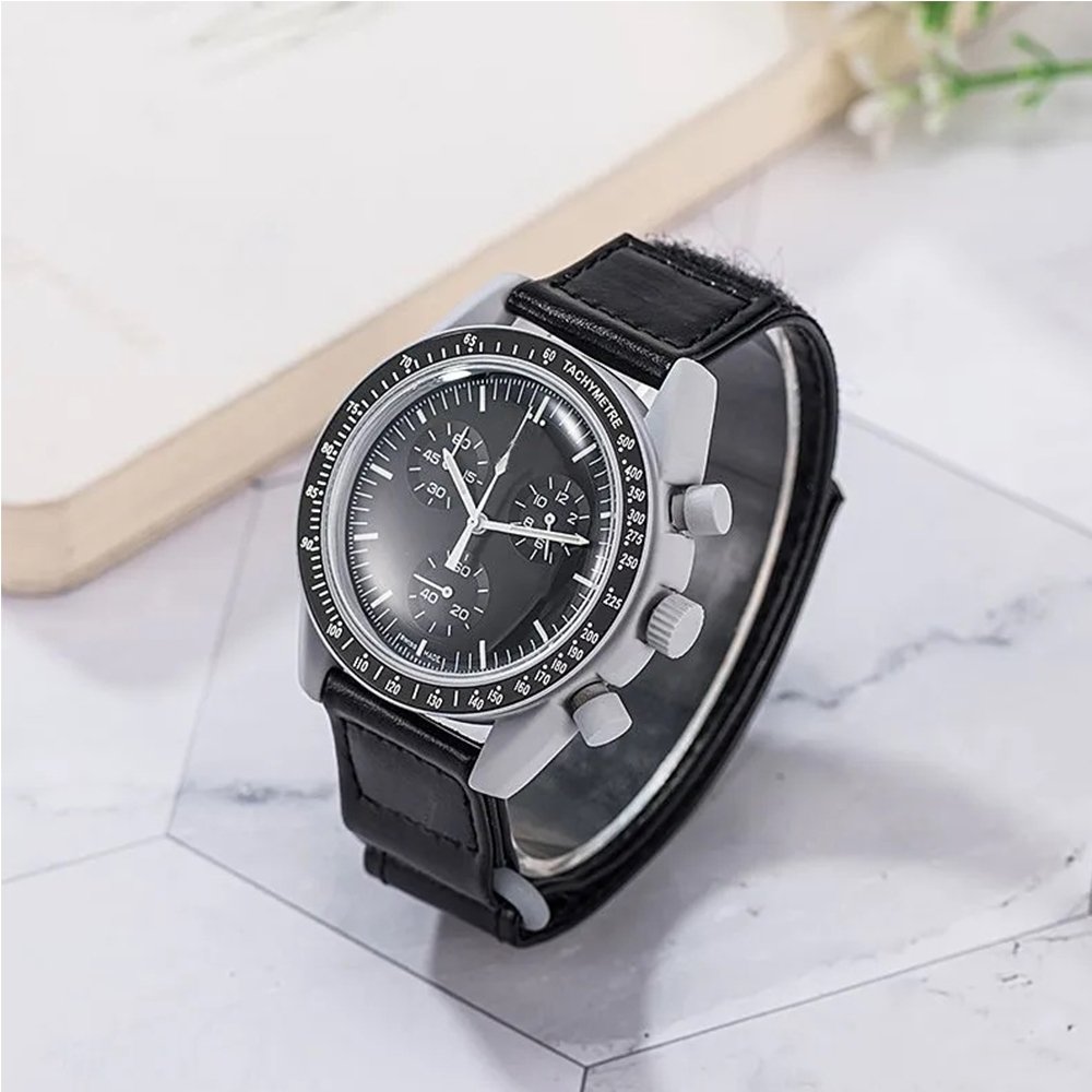 Vyriškas laikrodis su juodu dirželiu ir pilku korpusu