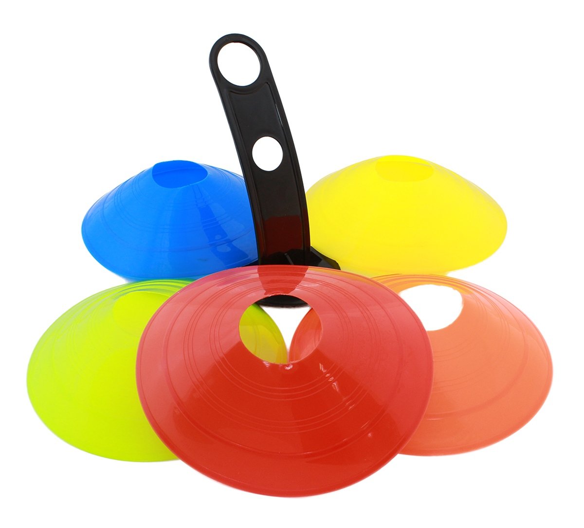 Itin praktiški treniruočių žymekliai 5 intensyvių, kontrastingų spalvų! Jie puikiai tinka įrengti treniruočių erdvę arba suskirstyti į komandas komandinėse sporto šakose. Jie leidžia patogiai priskirti zonas ir laukus žaisti ir treniruotis. Be to, komplekte yra specialus stovas su rankena, kuri leidžia patogiai laikyti visus žymeklius. Jie gali būti naudojami ant bet kokio paviršiaus ir bet kokiomis oro sąlygomis. Jie atsparūs drėgmei ir intensyviems saulės spinduliams (neskilinėja ir neblunka).